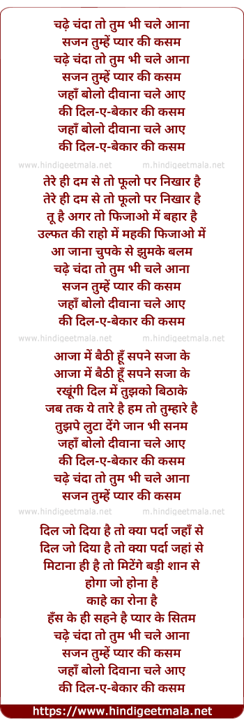 Lyrics of Chadhe Chandaa To Tum Bhi Chale Aanaa - चढ़े चंदा तो तुम भी चले आना