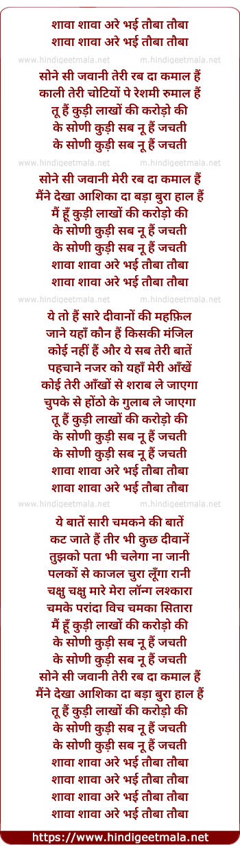 Lyrics of Sone Si Jawani Teri Rab Ka Kamal Hai - सोने सी जवानी तेरी रब दा कमाल हैं