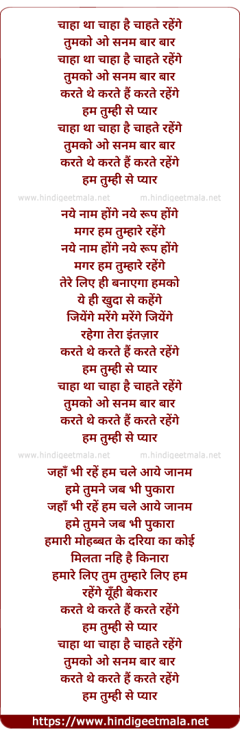 Lyrics of Chaha Tha Chaha Hai - चाहा था चाहा है