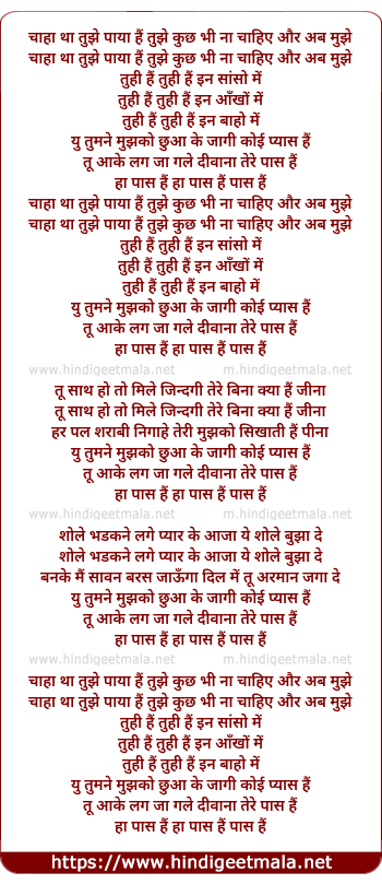 Lyrics of Chaha Tha Tujhe - चाहा था तुझे