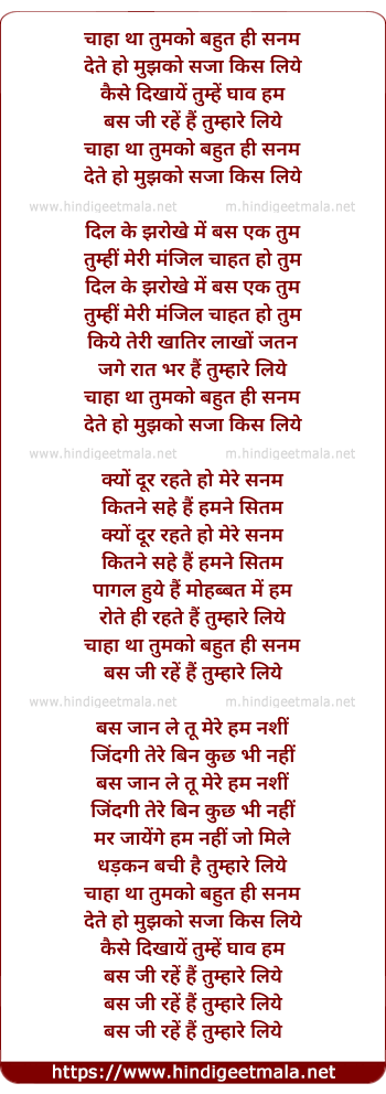 Lyrics of Chaha Tha Tumko Bahut Hi Sanam - चाहा था तुमको बहुत ही सनम