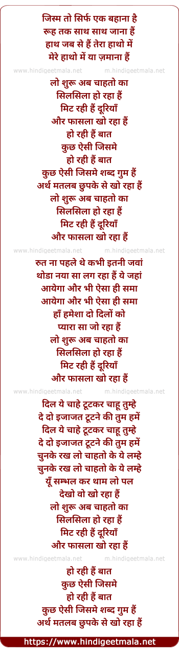 Lyrics of Chahato Ka Silsila (Duet) - जिस्म तो सिर्फ एक बहाना है