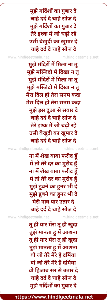 mujhe gardishyon ka gubar de