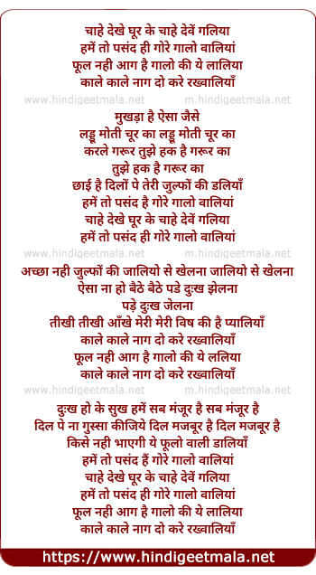 Lyrics of Chahe Dekhe Ghoor Ke Chahe Deve Galiya - चाहे देखे घूर के चाहे देवें गलिया
