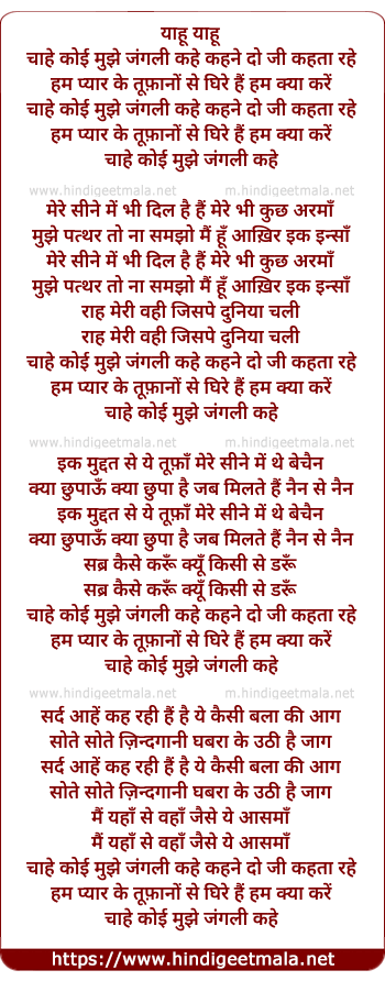 Lyrics of Yahoo Chahe Koyee Mujhe Junglee Kahe - याहू चाहे कोई मुझे जंगली कहे