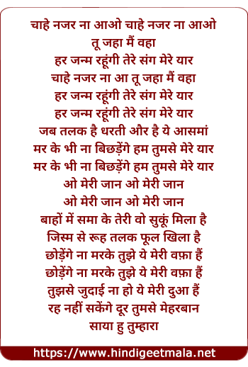 Lyrics of Chahe Nazar Na Aao - चाहे नजर ना आओ