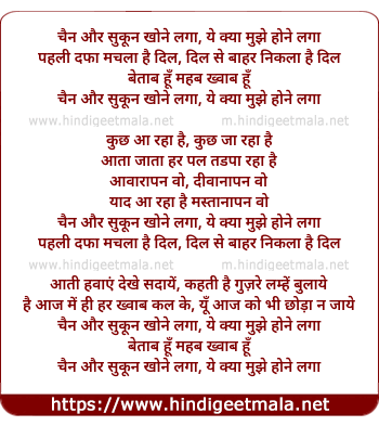 Lyrics of Chain Aur Sukun Khone Laga - चैन और सुकून खोने लगा, ये क्या मुझे होने लगा