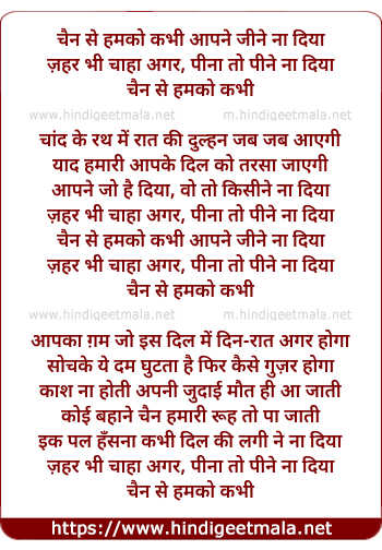 Lyrics of Chain Se Hamako Kabhi, Aapane Jine Naa Diyaa - चैन से हमको कभी आपने जीने ना दिया