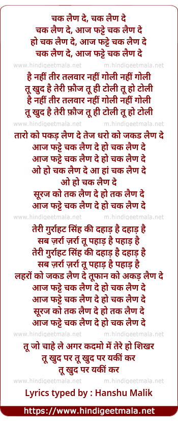 chak lein de, chak lein de