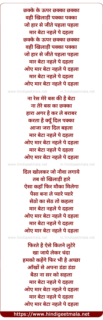 Lyrics of Chake Ke Upar Chaka Wo Hi Khiladi Pakka - छक्के के ऊपर छक्का वो ही खिलाड़ी पक्का