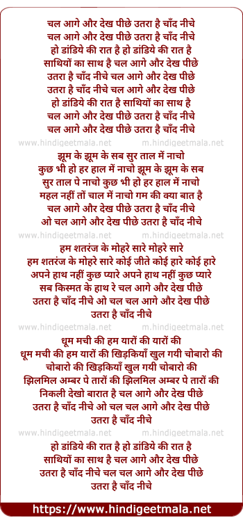Lyrics of Chal Aage Aur Dekh Pichhe - चल आगे और देख पीछे