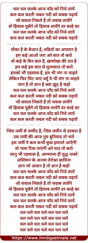 Lyrics of Chal Chal Chalake Aaj Chaand Ko Niche Laaye - चल चल चलके आज चाँद को निचे लायें