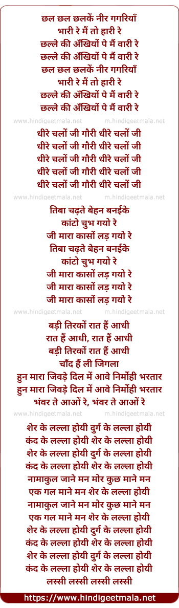 Lyrics of Chal Chal Chalke Neer Gagariya - छल छल छलकें नीर गगरियाँ