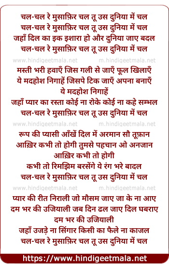 Lyrics of Chal Chal Re Musaafir - चल चल रे मुसाफ़िर