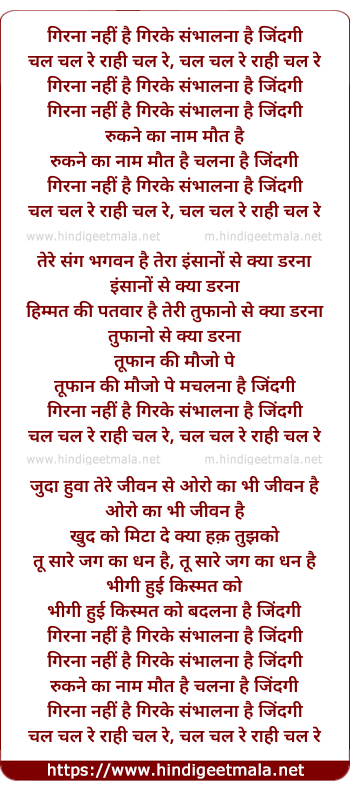 Lyrics of Chal Chal Re Rahi Chal Re - चल चल रे राही चल रे