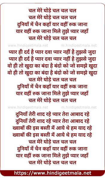 Lyrics of Chal Mere Ghode Chal Chal - चल मेरे घोड़े चल चल चल