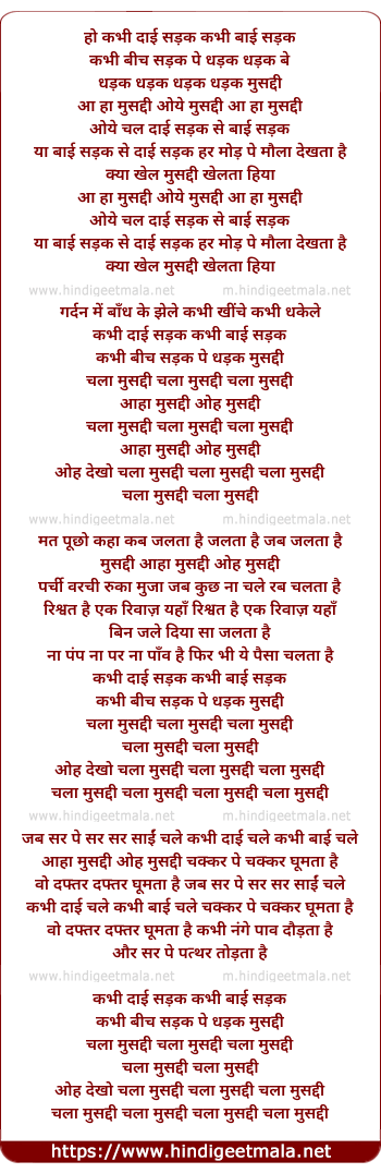Lyrics of Chala Musaddi Chala Musaddi - हो कभी दाई सड़क कभी बाई सड़क