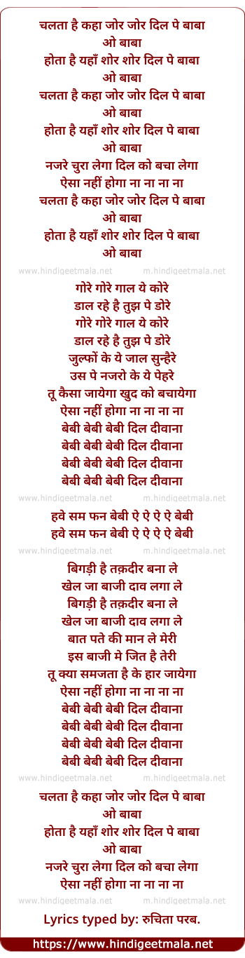 Lyrics of Chalataa Hai Kahaan Zor, Baby Baby - चलता है कहा जोर, बेबी बेबी
