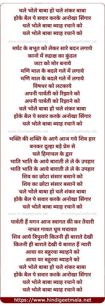 Lyrics of Chale Bhole Baba Byah Rachane Ko - चले भोले बाबा ब्याह रचाने को