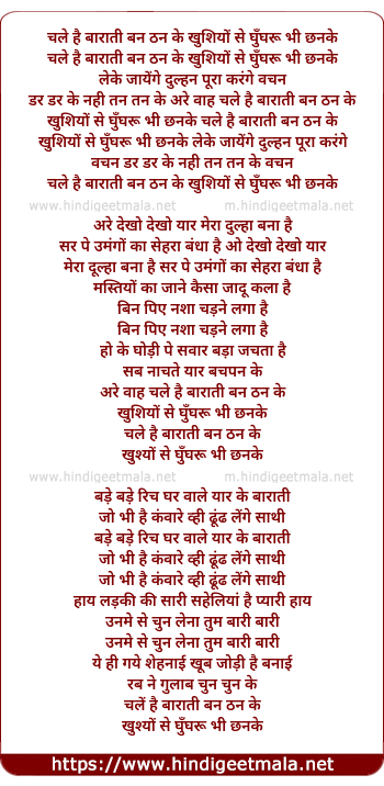 Lyrics of Chale Hai Baraati Ban Than Ke - चले है बाराती बन ठन के