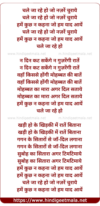 Lyrics of Chale Ja Rahe Ho Jo Najare Churaye - चले जा रहे हो जो नज़रें चुराये