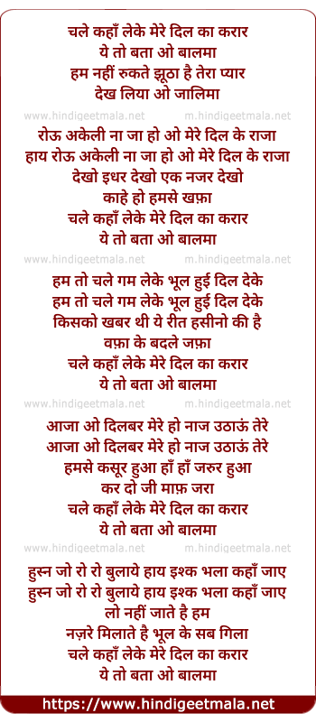 Lyrics of Chale Kaha Le Ke Mere Dil Ka Karar - चले कहाँ लेके मेरे दिल का करार