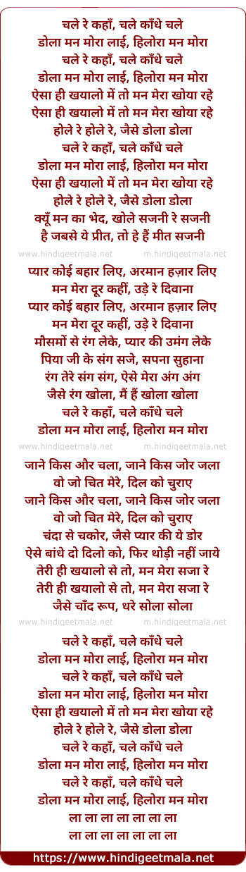 Lyrics of Chale Re - चले रे कहाँ, चले काँधे चले
