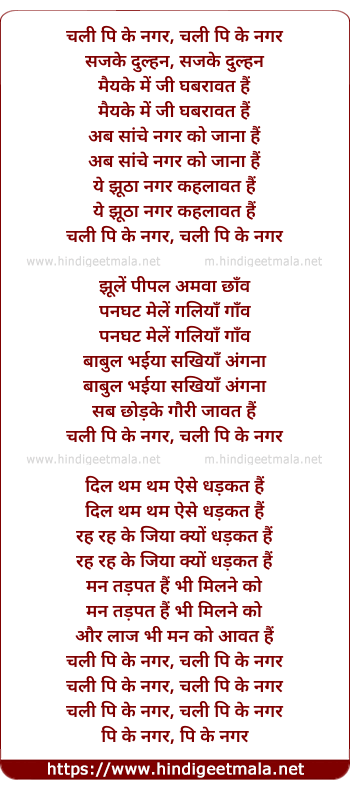 Lyrics of Chalee Pee Ke Nagar - चली पि के नगर