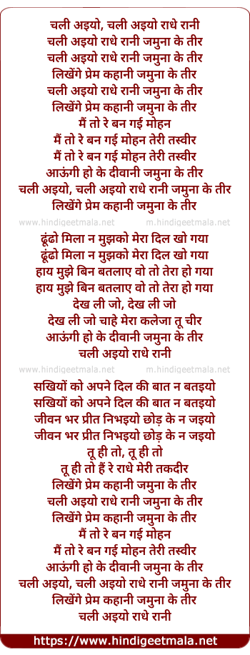 chali aiyo, chali aiyo raadhe raani jamuna ke tir