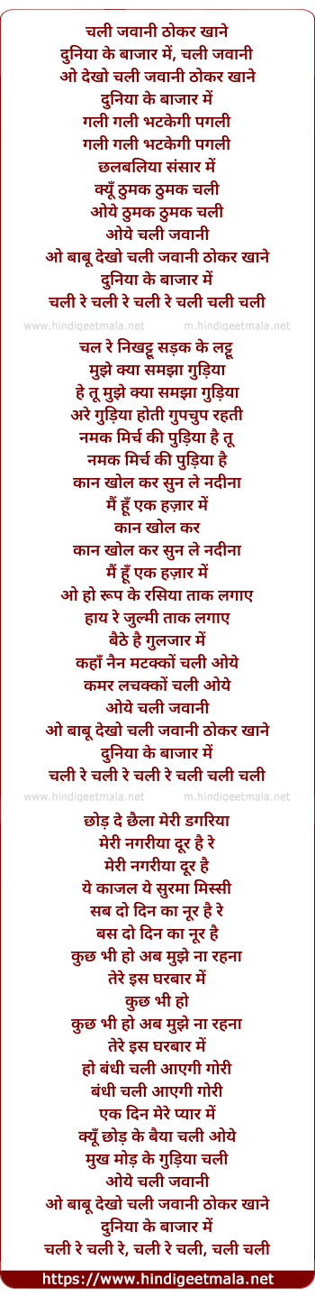 Lyrics of Chali Jawani Thokar Khane Duniya Ke Bazar Me - चली जवानी ठोकर खाने दुनिया के बाज़ार में