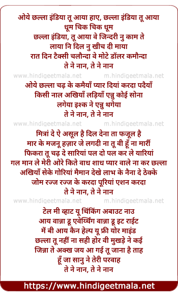 Lyrics of Challa India Tu Aaya (Remix) - ओये छल्ला इंडिया तू आया हाए, छल्ला इंडिया तू आया