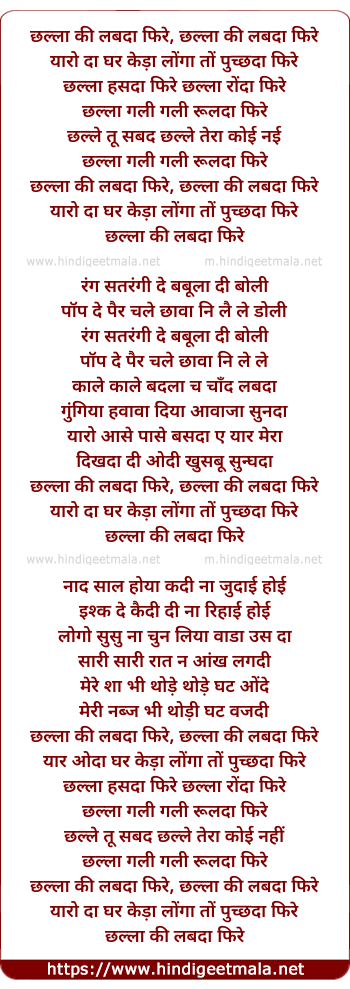 Lyrics of Challa Ki Labda Phire - छल्ला की लबदा फिरे