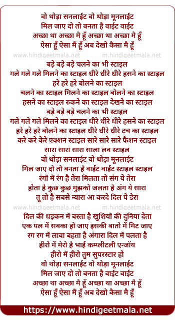 Lyrics of Chalne Ka Style Milne Ka Style - चलने का स्टाइल मिलने का स्टाइल