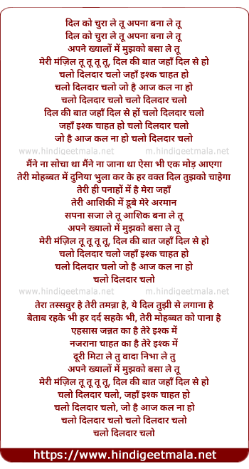 Lyrics of Chalo Dildar Chalo - दिल को चुरा ले तू अपना बना ले तू