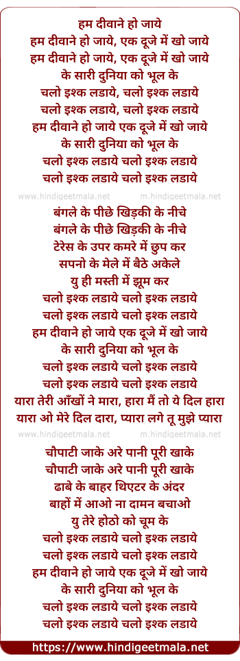 Lyrics of Chalo Ishq Ladaye - चलो इश्क लड़ाए