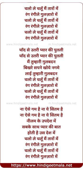 Lyrics of Chalo Le Chalu Main Taro Me - चलो ले चलूँ मैं तारों में