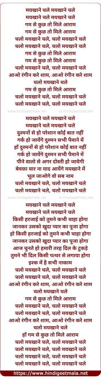 Lyrics of Chalo Maikhane Chale - मयखाने चले मयखाने चले