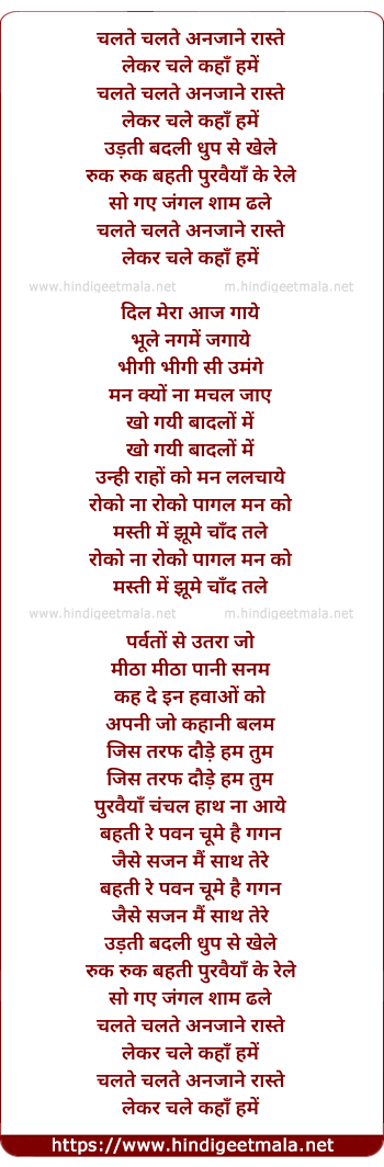 Lyrics of Chalte Chalte Anjaane Raste - चलते चलते अनजाने रास्ते