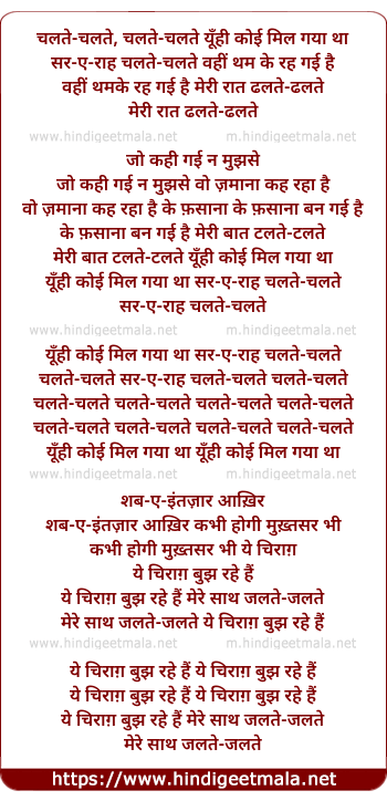 Chalte Chalte, Yuhi Koi Mil Gayaa Tha - चलते-चलते, यूँही कोई मिल गया था