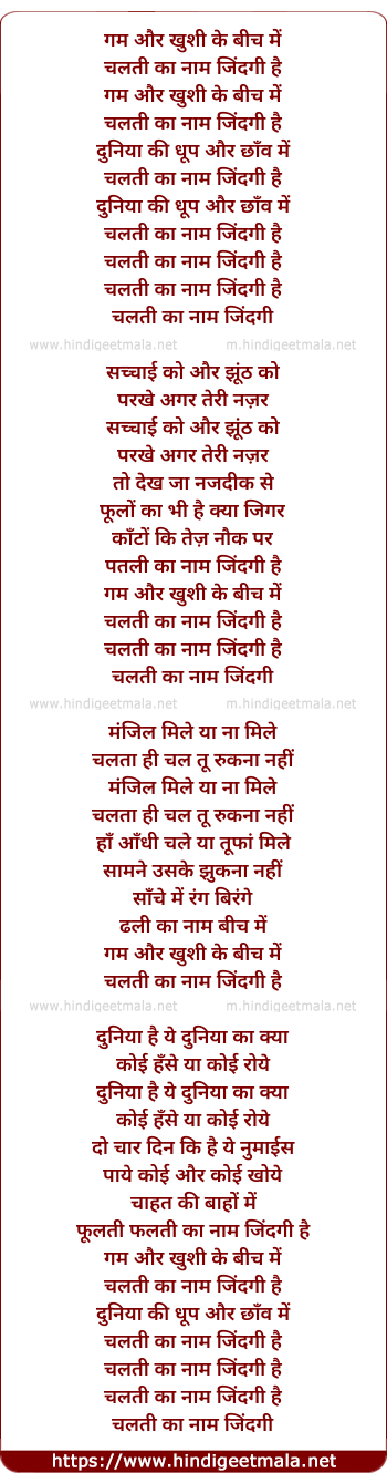 Lyrics of Chalti Ka Naam Zindagi (Duet) - गम और खुशी के बीच में