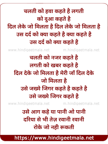 Lyrics of Chalti Ko Hawa Kehte Hai - चलती को हवा कहते है