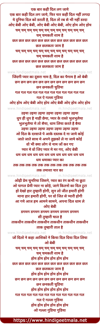ik baar kahi dil lag jaaye, phir yaar kahi dil nahi lagada