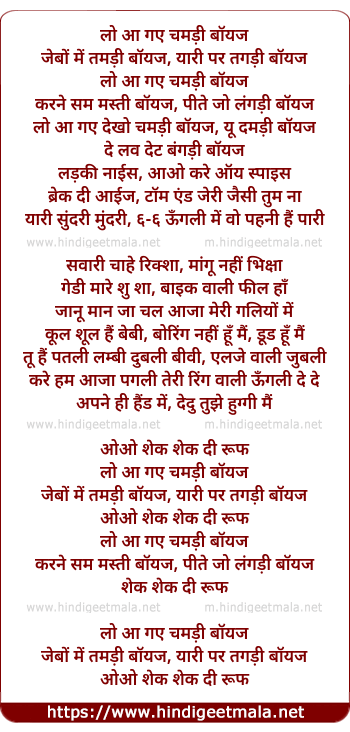 Lyrics of Chamdi Boys - चमड़ी बॉयज