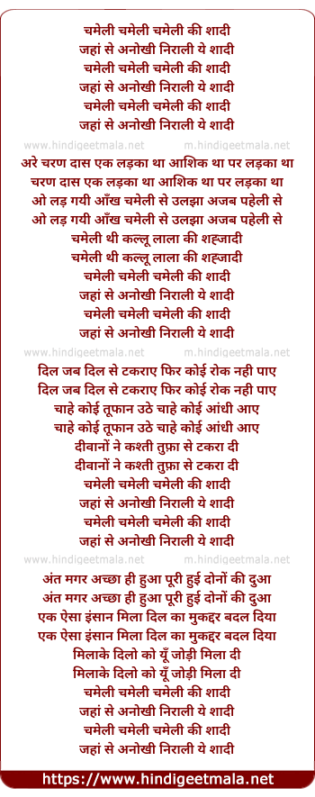 Lyrics of Chameli Ki Shadi - चमेली की शादी