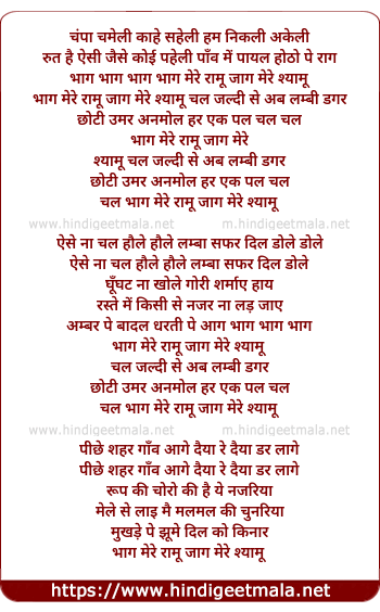bhag mere ramu jag mere shamu chal jaldi se chal lambi dager