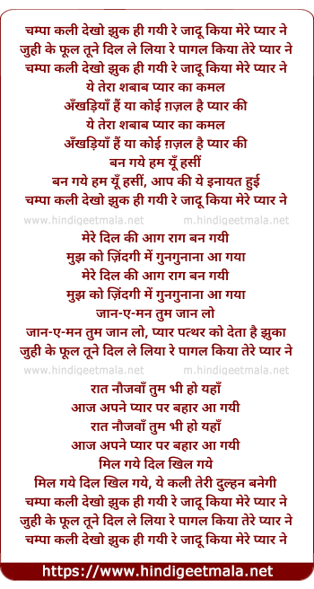 Lyrics of Champa Kali Dekho Jhuk Hi Gayi - चम्पा कली देखो झुक ही गयी