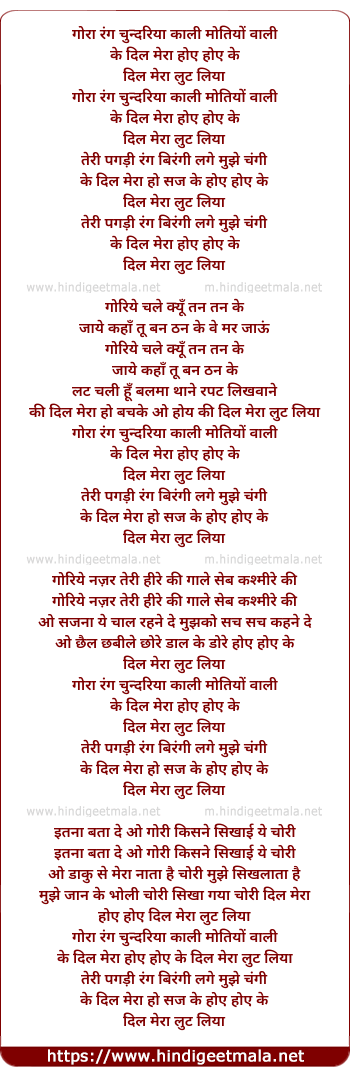 Lyrics of Chanchal Nain Mila Ke Dil Mera Loot Liya - चंचल नैन मिला के दिल मेरा लुट लिया