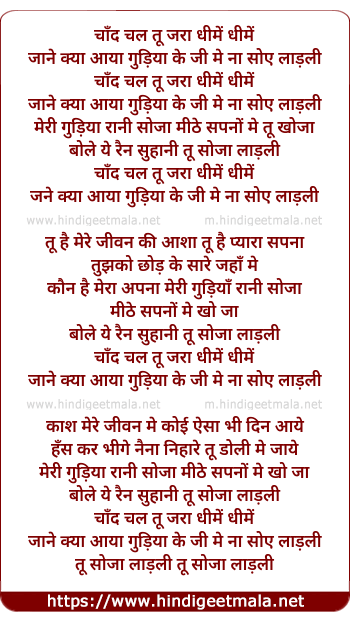Lyrics of Chand Chal Tu Zara Dhime Dhime - चाँद चल तू जरा धीमें धीमें