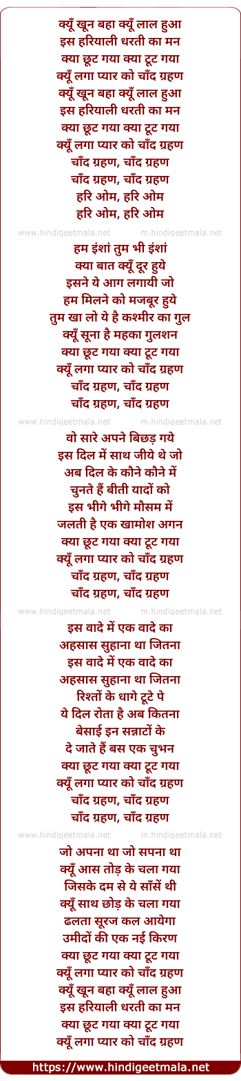 Lyrics of Chand Grahan - चाँद ग्रहण
