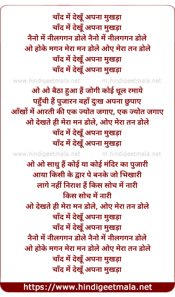 Lyrics of Chand Me Dekhu Apna Mukhda - चाँद में देखूँ अपना मुखड़ा